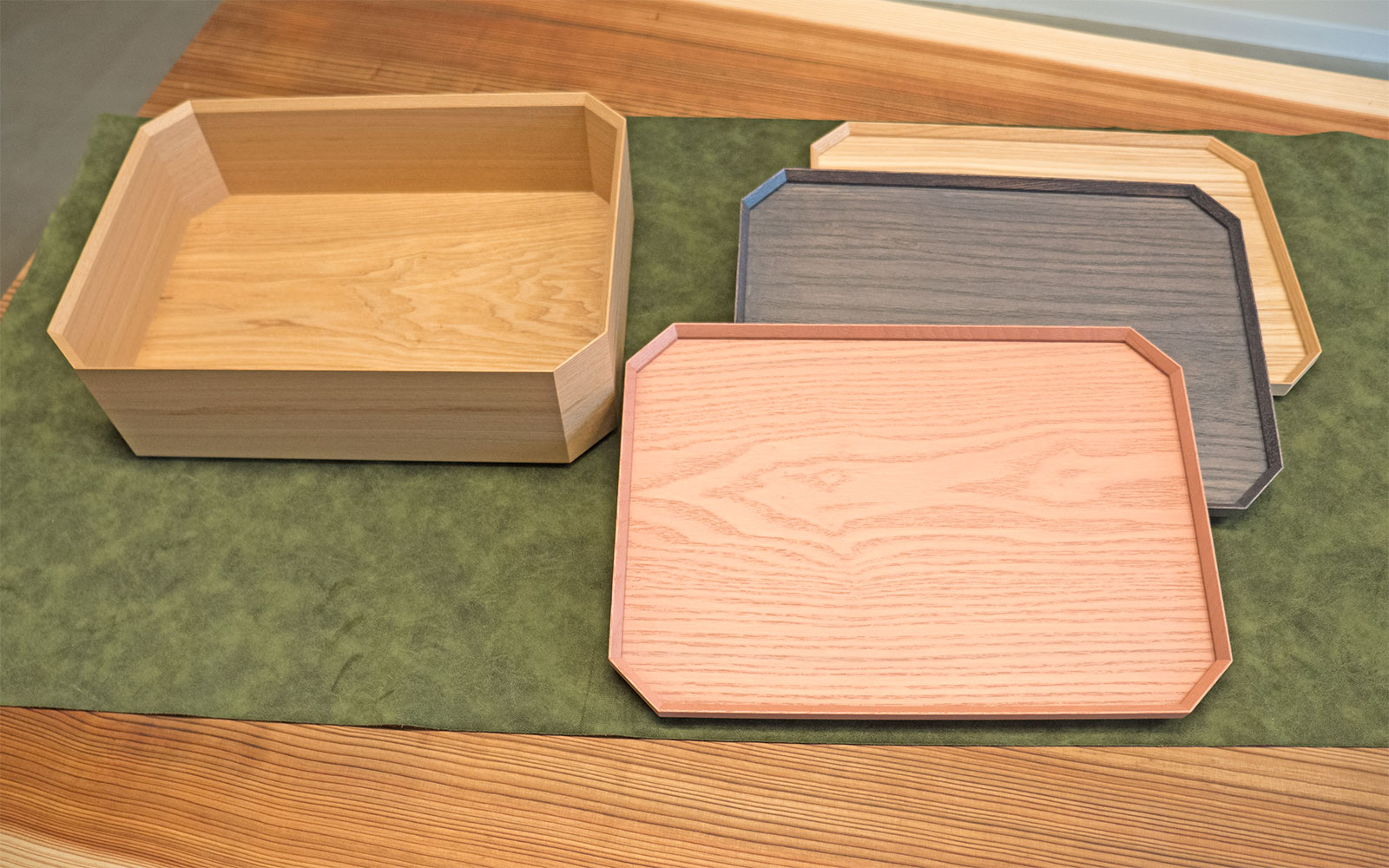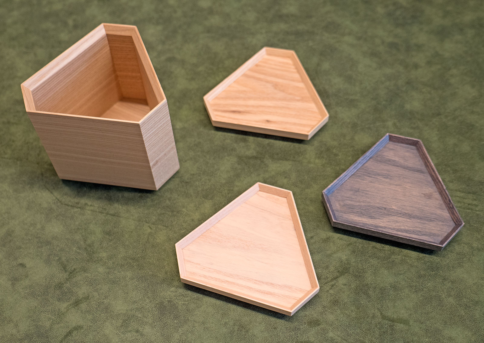 この漆器「TSUM」は、木地の質感と塗装によるカラーリングの両方を楽しめる仕上がり。三角・四角・六角の形状と異なる高さを組み合わせてお使いいただけます。お皿やトレー・筒や収納箱など、ご自分に合った使い方を見つけてください。