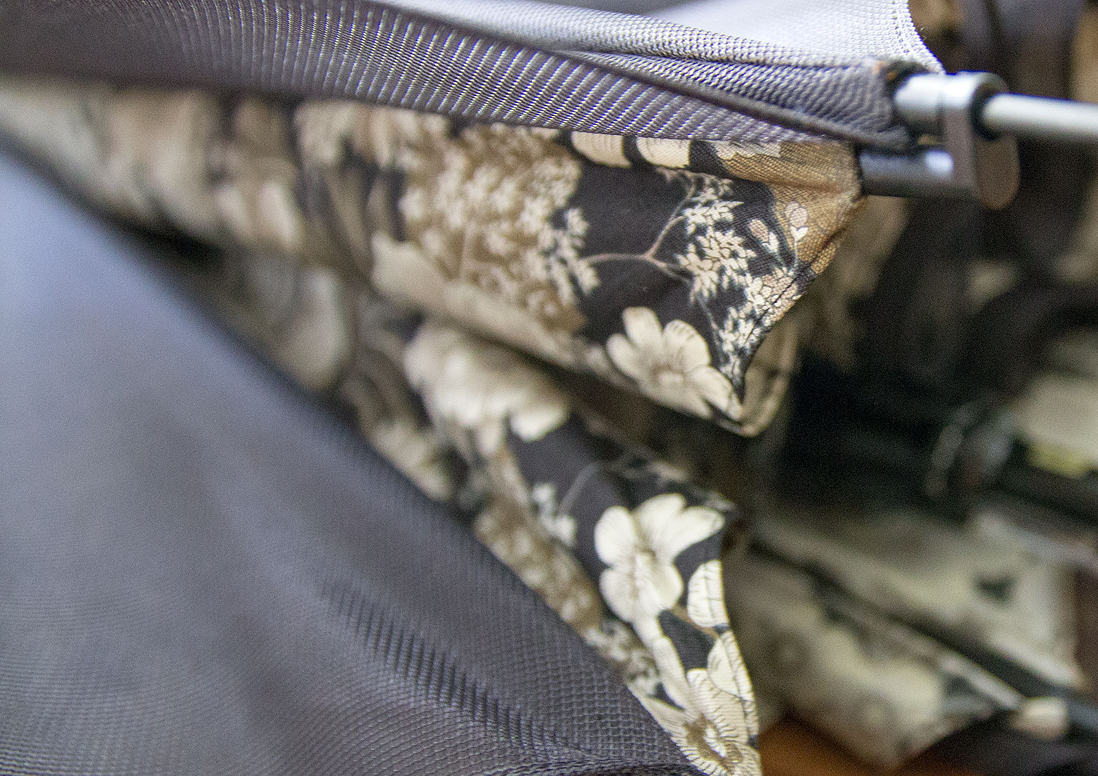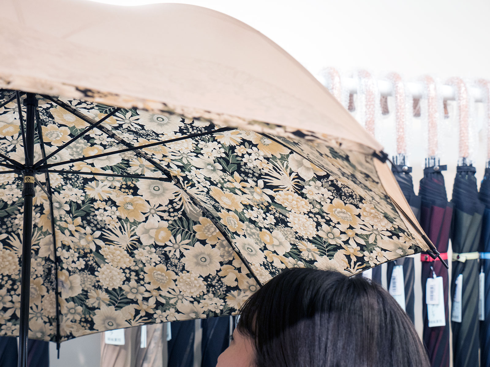 生地が二重になっているので、雨滴の当たる音が優しい雨音に変わります。使ってびっくり。雨の日も心地よく、話し声や周りの音などが聞き取りやすくなります。夏は日傘として紫外線と熱を遮断、木陰に入った時のような涼しさです。